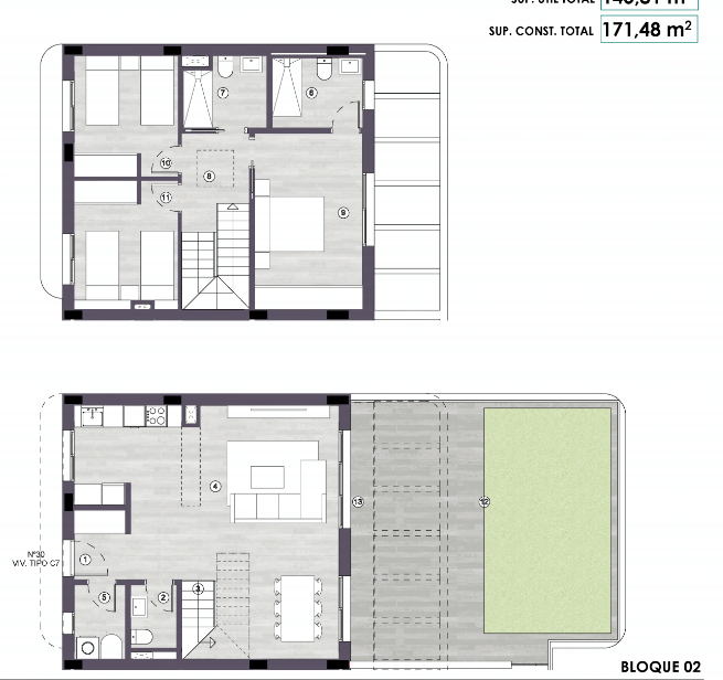URBANIZATION: Community pool for adults with a designated children's pool area.Landscaped communal spaces.Fully accessible pathways throughout the development.Private parking with pre-installation for electric vehicle charging. STRUCTURE: Foundation and structure built with reinforced concrete, adhering to current seismic resistance and specific structural concrete regulations. FACADE: Mixed facade featuring an outer layer of 11 cm thick hollow ceramic brick, internally coated with pol...