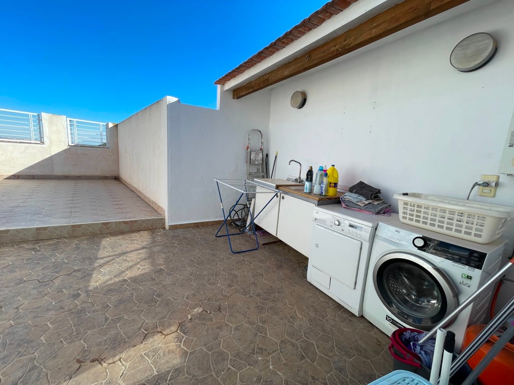 Spacious 5-bedroom family home in the heart of Algorfa Introducing this exceptional terraced house, beautifully renovated and impressively spacious, located in the charming village of Algorfa. Ideal for families seeking comfort, generous space and proximity to all amenities, it offers the perfect blend of modern living and traditional village character. Upon entering, a welcoming private terrace leads into a bright open-plan living area that combines the lounge, dining room and a contemporar...