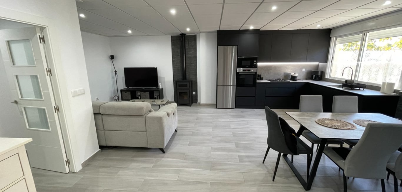 Spacious 5-bedroom family home in the heart of AlgorfaIntroducing this exceptional terraced house, beautifully renovated and impressively spacious, located in the charming village of Algorfa. Ideal for families seeking comfort, generous space and proximity to all amenities, it offers the perfect blend of modern living and traditional village character.Upon entering, a welcoming private terrace leads into a bright open-plan living area that combines the lounge, dining room and a contemporary kitc...