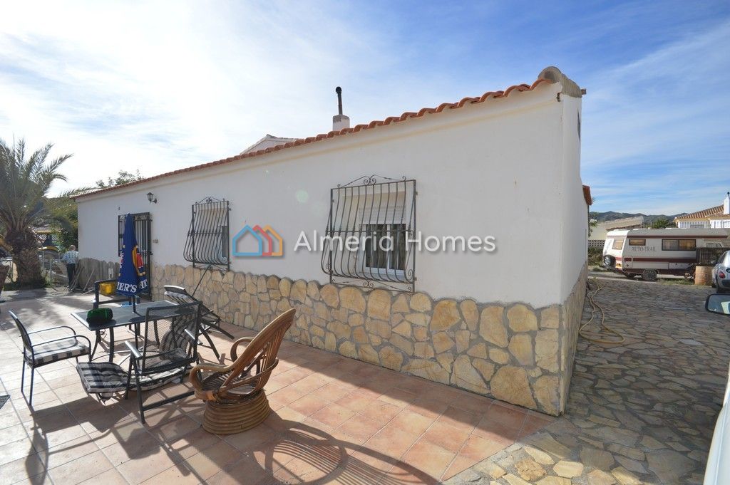 Lovely large property for sale in the Arboleas area which has all amenities for a day to day lifestyle. The property has two separate entrances where the top entrance has a lot of space for parking. A large sunny patio to the front of the villa leads to the main entrance where the front door opens into a modern, open plan kitchen/dining room. A door opens into a spacious living room which includes fireplace with wood burning fire and located near here you will find the family bathroom. A sepa...