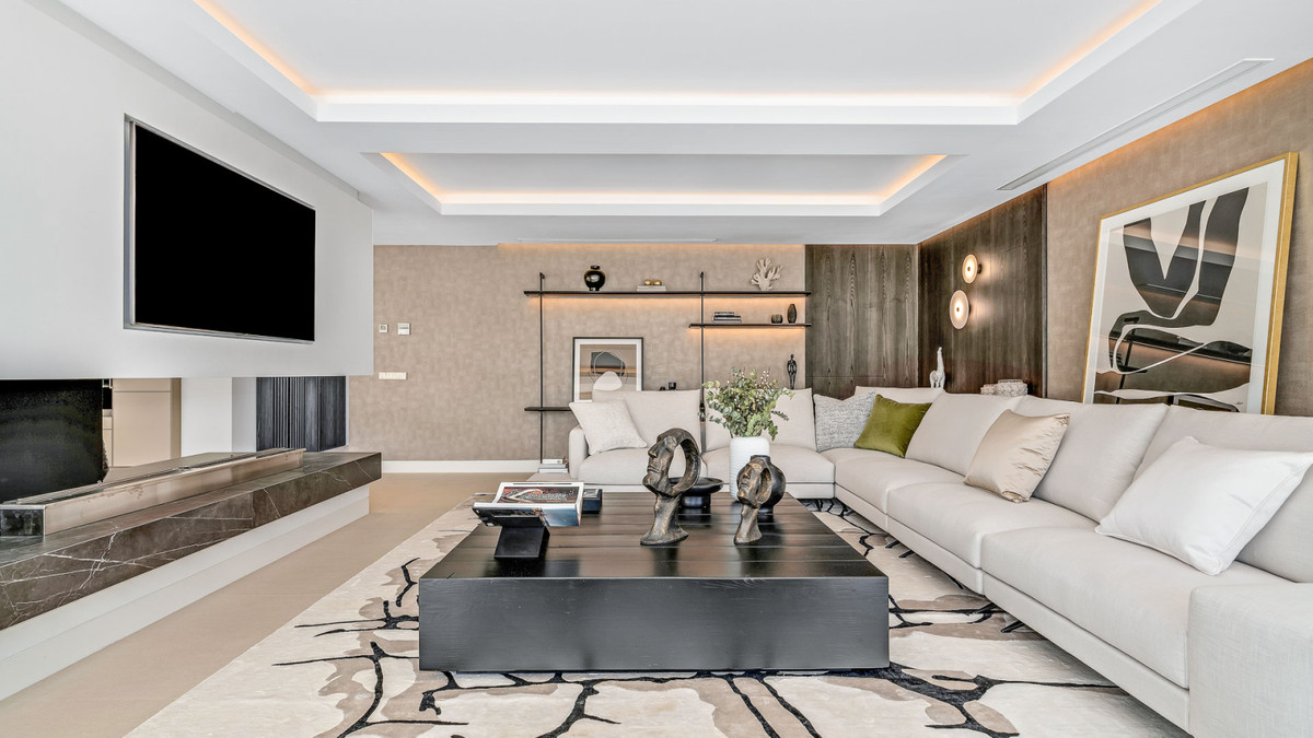 A new villa by the beach in one of the trendiest beach resorts in Marbella. A beautiful villa created by one of Marbella's best architects and top interior design house. The villa is built to high quality. It offers 5 bedrooms, a total of 585m2 living. The villa is built to exceptionally high qualities, offering chic interiors, as well as a beautifully landscaped garden. An impressive entry with a cascading waterfall leading to an impressive living area with a modern fireplace, a luxurious spaci...