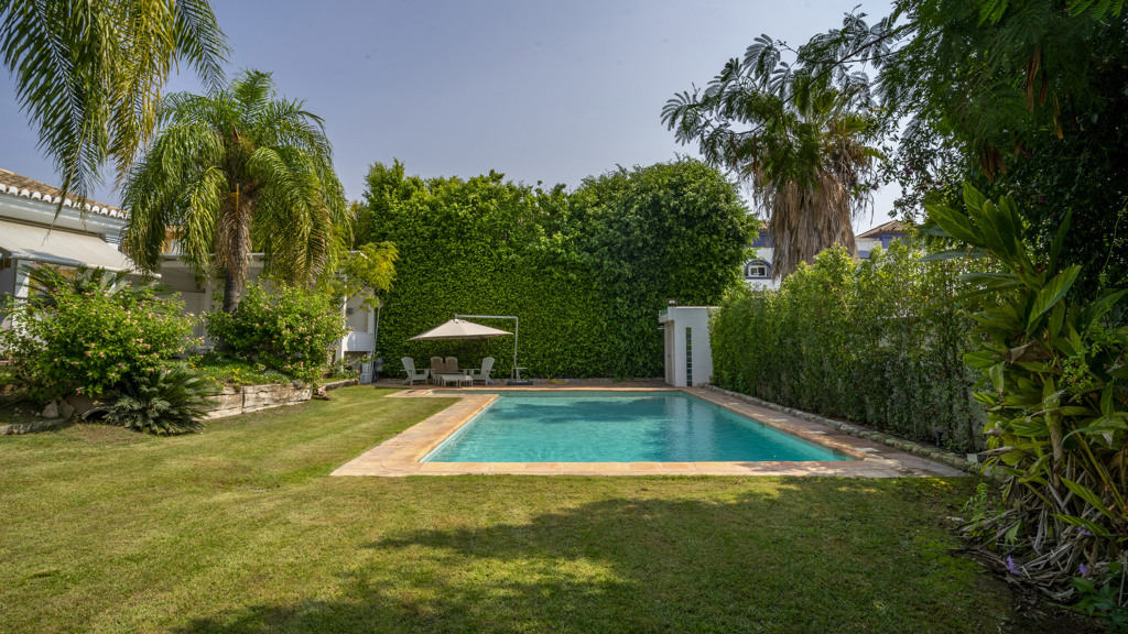Contemporary Andalusian Style Villa in San Pedro, Marbella, with south orientation and sea views, located in an exclusive residential area of villas just a few meters from the Guadalmina Golf Club and within walking distance of all the services that San Pedro Alcántara has to offer. This classic-style villa has been completely renovated in recent years, showcasing high-quality finishes that give it a unique and sophisticated personality. Spread over three floors, the property sits on a large pl...
