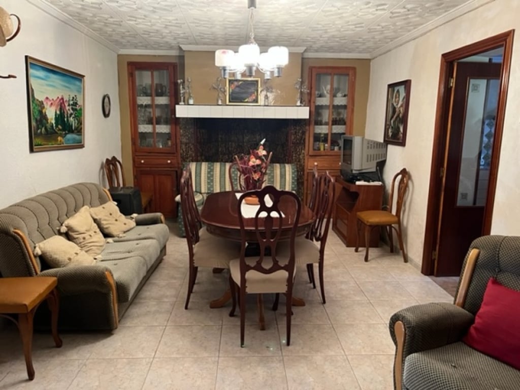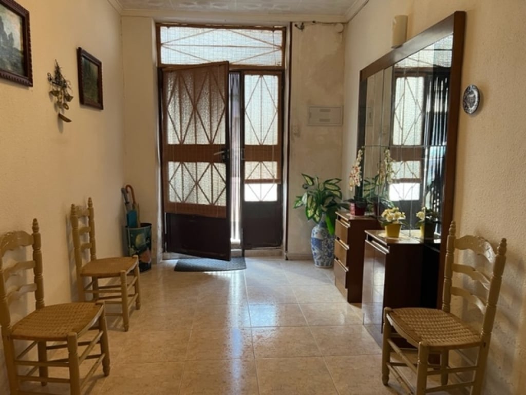 This is a village house on a wide street in Ayora with lots of parking space, the house is ready to move into but upstairs needs to be reformed, lounge, large kitchen with backdoor onto the courtyard and outside kitchen, bathroom, bedrooms downstairs, two bedrooms upstairs and a large landing to be reformed.