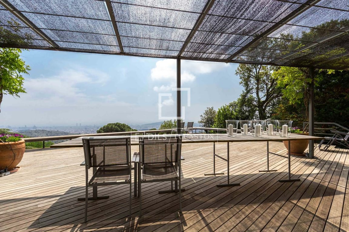 Spectacular contemporary design house in Vallvidrera. It has fantastic views of Barcelona and is close to the city centre and Sarriá via the funicular. On the main floor we find a large hall that leads to an impressive dining room living room with access to an impressive 90 m2 terrace with unobstructed views. The kitchen is fully equipped and has a pantry and a utility room area with a separate entrance. Next to the living room, we have a room with a bathroom that is used as a living room, but...
