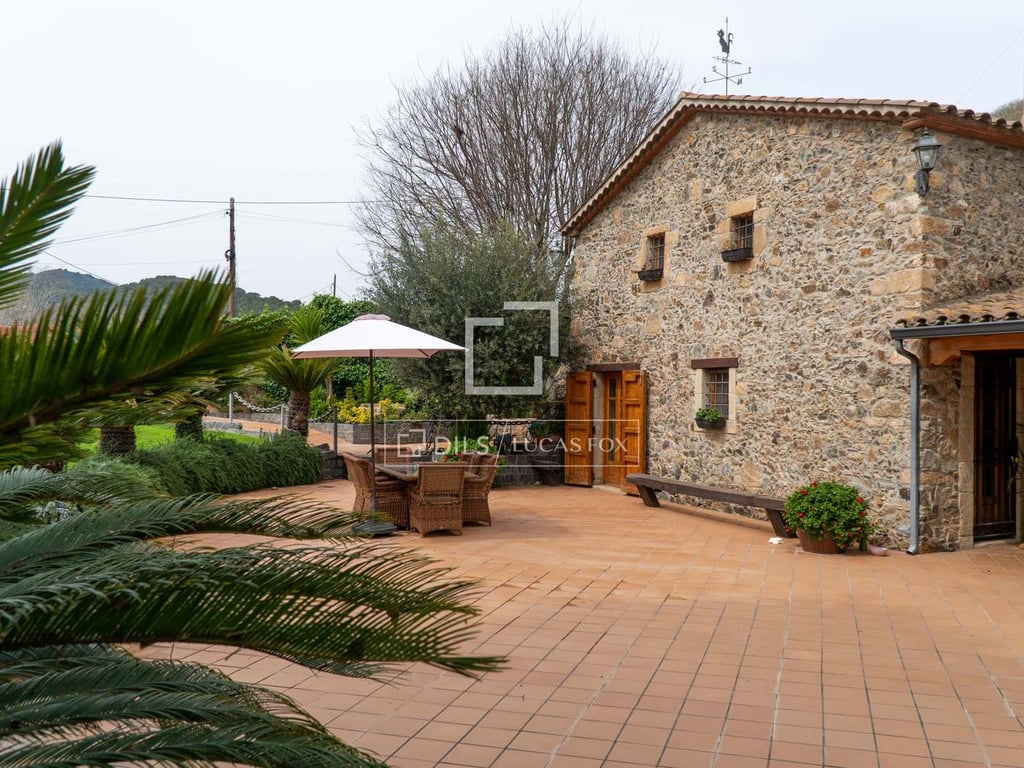 Masía La Capella, a distinguished farmhouse with a 12th-century Romanesque chapel for sale in the town of Santa Susana. La Capella offers everything you would expect from a completely renovated, traditional, rustic-style Catalan farmhouse, with several buildings, built on a 4,259 m2 plot with beautiful gardens with fruit trees and a large swimming pool. On the one hand, the main building has an area of 220 m2 with four bedrooms and two bathrooms spread over two floors, with a rustic kitchen an...