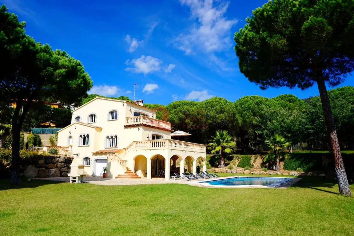 Beautiful spacious villa in Bell Lloc, Santa Cristina d'Aro Large house located in Bell Lloc with a total constructed area of 480m2 and its own land of 3500m2. The garden features a very large pool (12 x 6m) and a covered terrace for outdoor dining, with additional terraces accessible from different rooms in the house. The garden has grass ideal for children to play ball games. The owners used to rent the house to tourists, and I imagine it could reach more than €2000 per week in July and Augu...