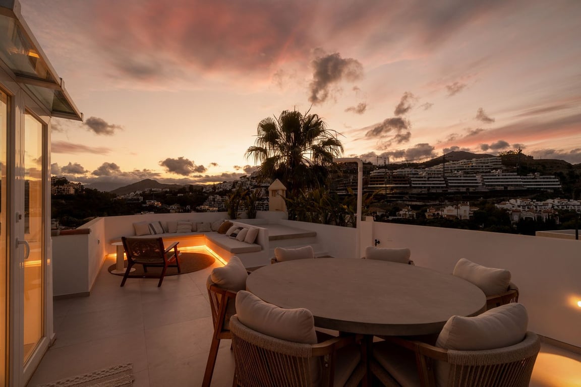 An elegant duplex penthouse, located within a prestigious development in La Quinta, Benahavís. Designed with both function and style in mind, the property offers open-plan living with natural light and stunning views of the Mediterranean Sea and surrounding mountains. Spanning over two levels plus an incredible roof top solarium, the home features three spacious bedrooms, including a master with an ensuite bathroom. The ground floor (entrance level) offers an open-plan kitchen, living, and dinin...