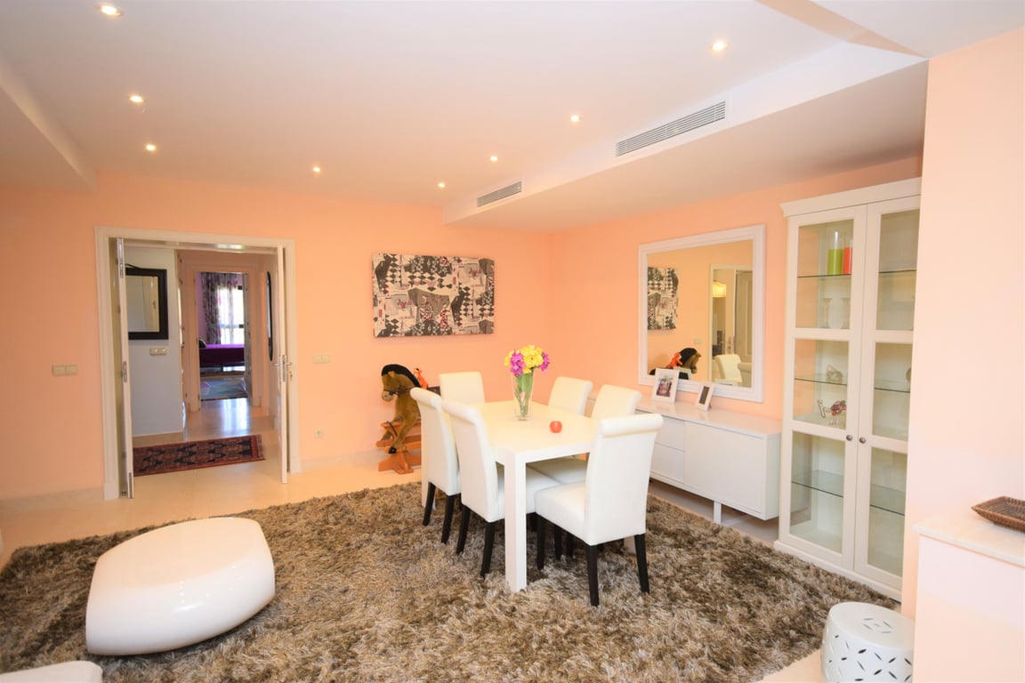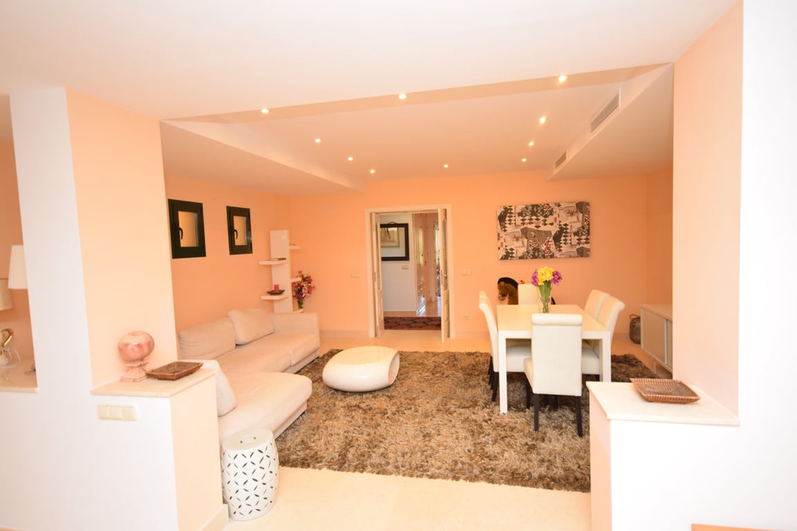 This 4 bed west facing apartment is situated in the gated comunity Capanes del Golf, which has 5 swimming pools, beautiful landscaped gardens, gymnasium, spa and sauna. This fantastic complex is surrounded by a golf course and only 10 minutes away from Puerto Banus or Marbella. The apartment has 4 bedrooms and 4 bathrooms, it has 2 lounges, a fully fitted kitchen, 2 terraces with wonderful views to the golf and the mountains. Features: airconditioning, marble floors, underfloor heating in the ba...