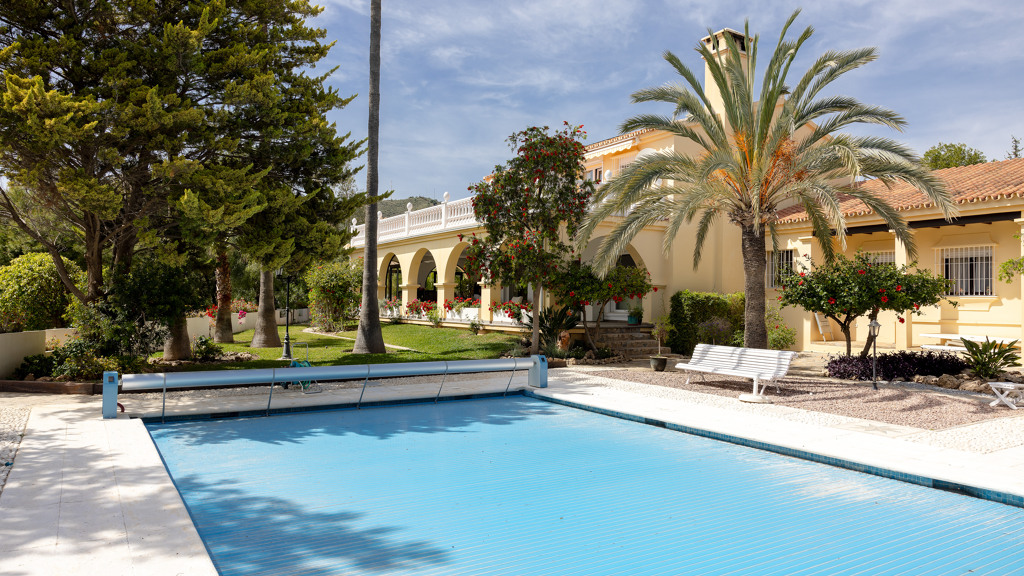 Gilmar Real Estate is pleased to present this magnificent rustic estate in Benajarafe, Malaga. With an area of 84,217 square meters and an impressive independent villa of 326 square meters, this property is a true gem on the Costa del Sol. The villa features a beautifully maintained Mediterranean garden, a saltwater pool protected with an electric cover, and a covered porch with partially enclosed glass walls. With a total of 8 bedrooms, 5 bathrooms, 1 living room, 2 kitchens, a laundry room, a...