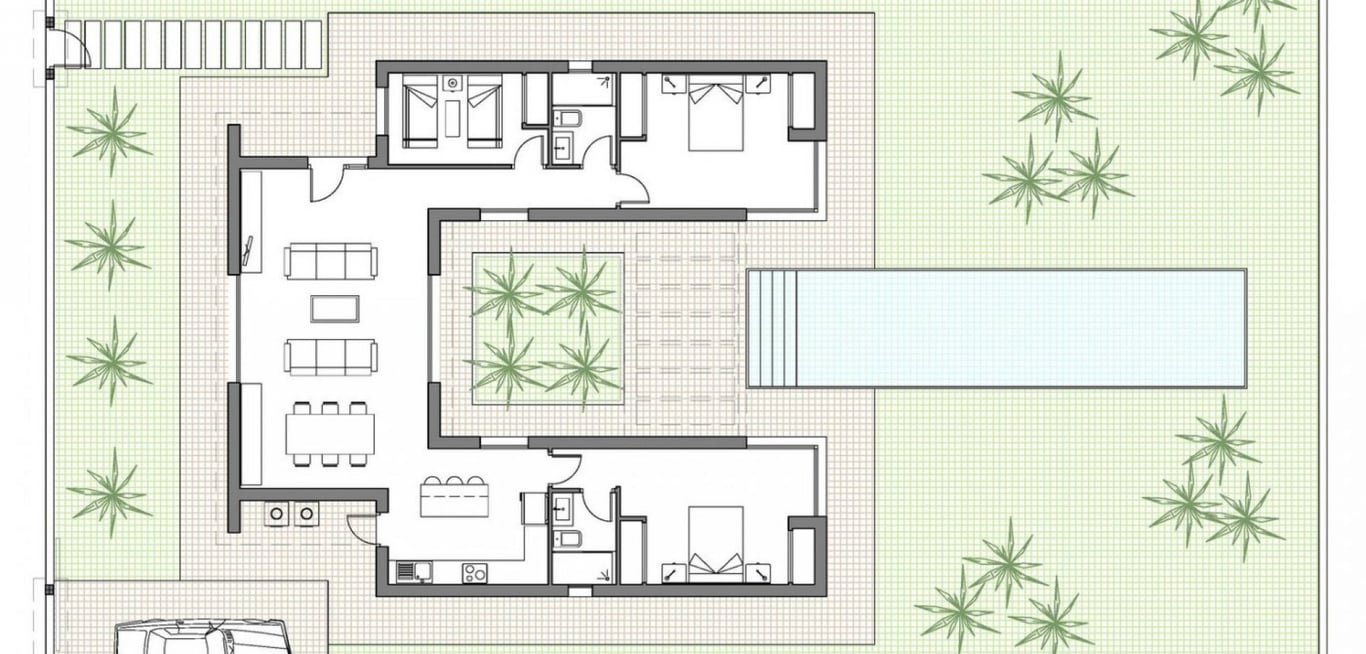 NEW BUILD MODERN VILLAS IN BENIJOFAR New Build villas located in Benijófar, a privileged area of the Costa Blanca, equipped with all services, 20 minutes from Alicante Airport, near the beautiful beaches of Guardamar and several golf courses. It is a modern style villas consisting of spacious living-dining room with an open-plan kitchen, 3 bedrooms( one of them en-suite) and 2 bathrooms. It also has a private plot with terrace, parking area, private pool, Mediterranean-style garden with grea...