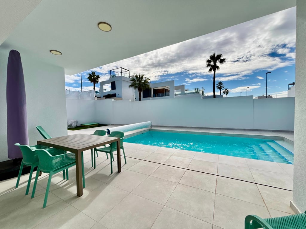 This As New, South Facing, Three Bedroom, Corner Detached Villa in Benijofar is located on the edge of this buzzing and highly sought-after town, within walking distance of a school, municipal sports ground, park and lake, medical centre, pharmacy, and bank. A selection of café bars, restaurants, and a supermarket can be reached within a 10 minute walk, while Quesada is just a 5 minute drive and La Marquesa golf course within 10 minutes. Built in 2023 by a reputable builder, this immaculately pr...