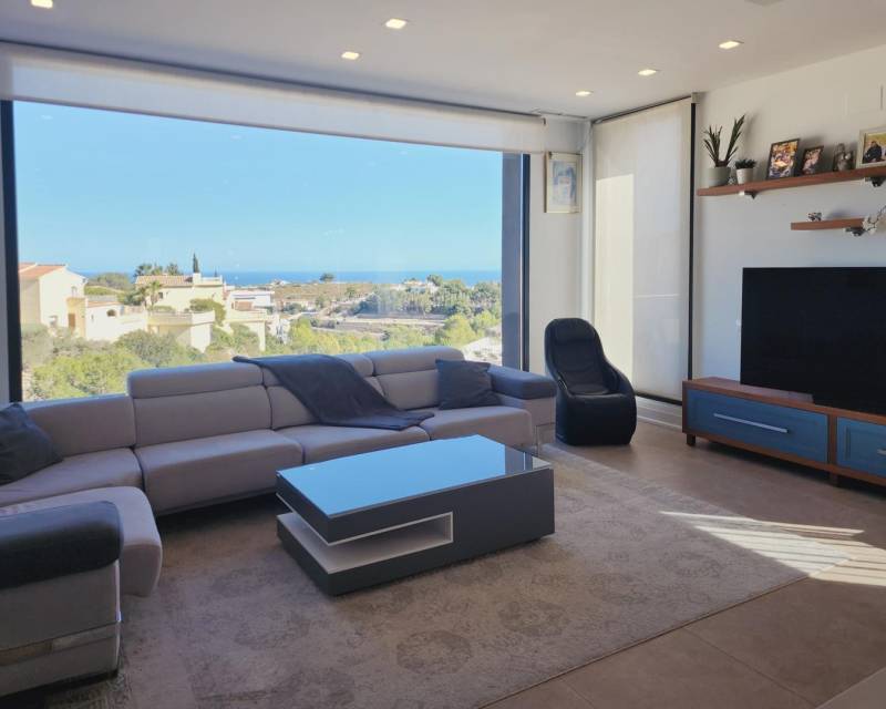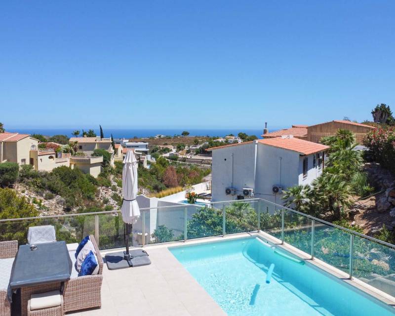 Modern villa for sale in Cumbre del Sol Impressive, contemporary style villa in Begonia. The property comprises: 3 large double bedrooms, 2 full bathrooms, guest cloakroom, bright lounge-diner with an elegant open-plan kitchen and several terraces with views towards the sea. Equipped with hot and cold air-conditioning and Miele appliances. Beautiful garden with fruit trees, 23m2 of covered terrace and 62m2 of parking. Located just a short distance from the Granadella Natural Park. To arrange to...