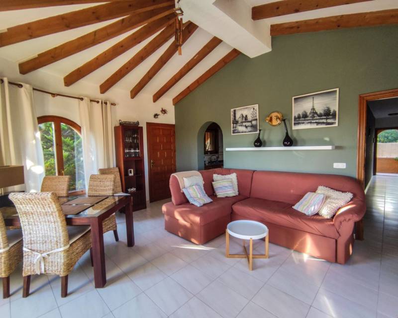 Villa for sale in Encinas This spacious, south facing villa comprises: 2 double bedrooms, 2 bathrooms, lounge-diner, kitchen and a covered terrace. On the lower level is a guest apartment with 2 double bedrooms, bathroom, lounge-diner and kitchen. The villa is surrounded by a low maintenance garden with pool and a parking area. To arrange to view this villa for sale in Benitachell, please contact Sunshine Villas, your estate agent in Benitachell, Costa Blanca.