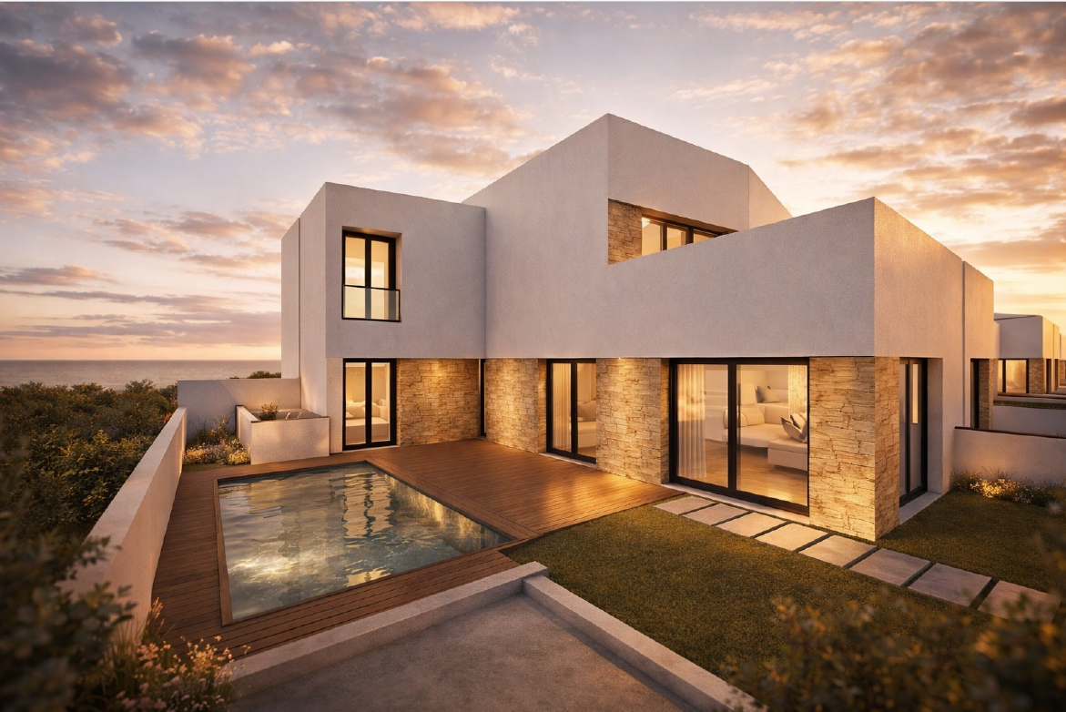 Step into a world of luxury with this detached villa featuring three bedrooms and two bathrooms. A harmonious blend of style and comfort awaits you in this meticulously designed residence, with the option to add extras such as a private pool, basement, or solarium. Upon entering, the open floor plan floods the interior with natural light, accentuating the contemporary finishes and high-quality craftsmanship. The three bedrooms offer ample space, while the two well-appointed bathrooms add a touc...