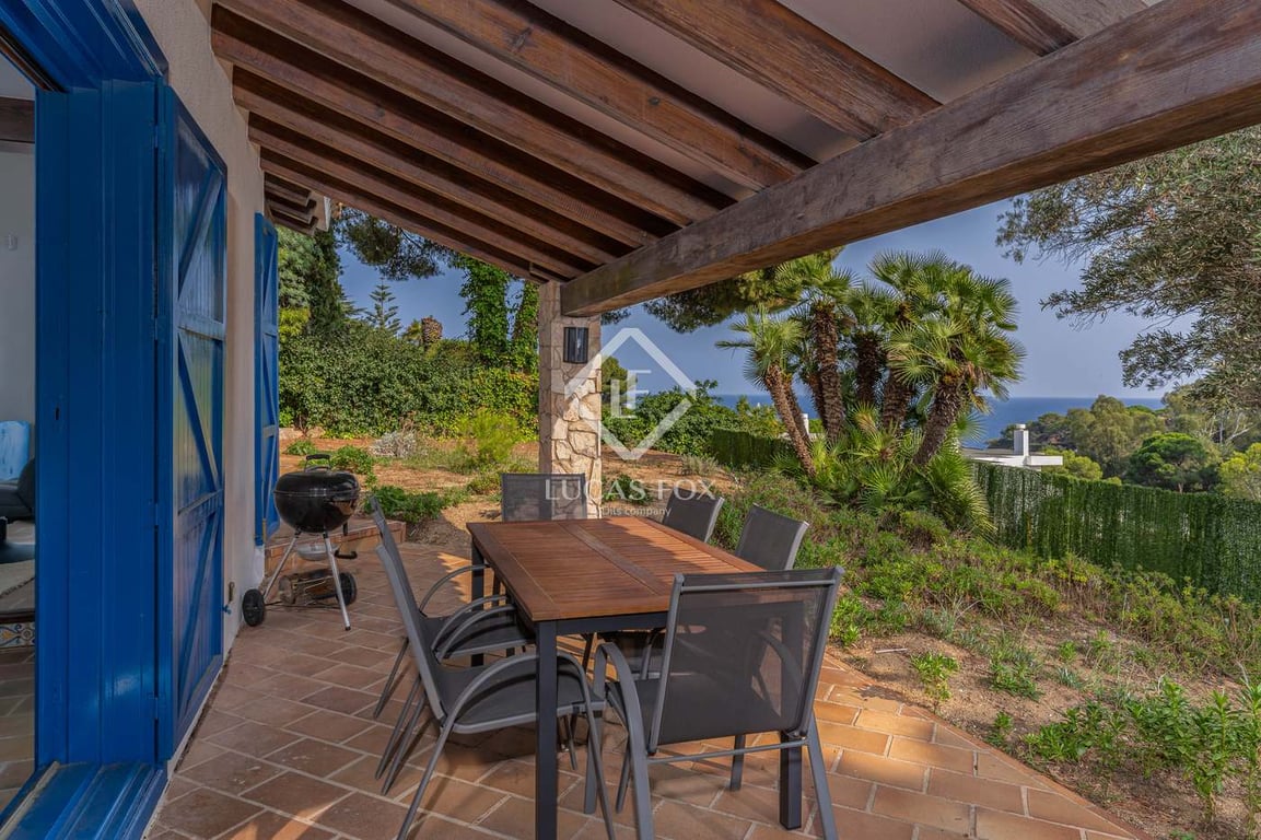 Lucas Fox presents this Mediterranean-style house, with large windows that flood the spaces with natural light and offer stunning sea views for sale in Blanes. This comfortable and elegant property enjoys a privileged location close to the beach. It has a constructed area of 175 m2, on a plot of approximately 800 m2, surrounded by a lush garden that provides privacy. The garage, located at street level, has capacity for two vehicles. Upon entering the ground floor, there is the main entrance...