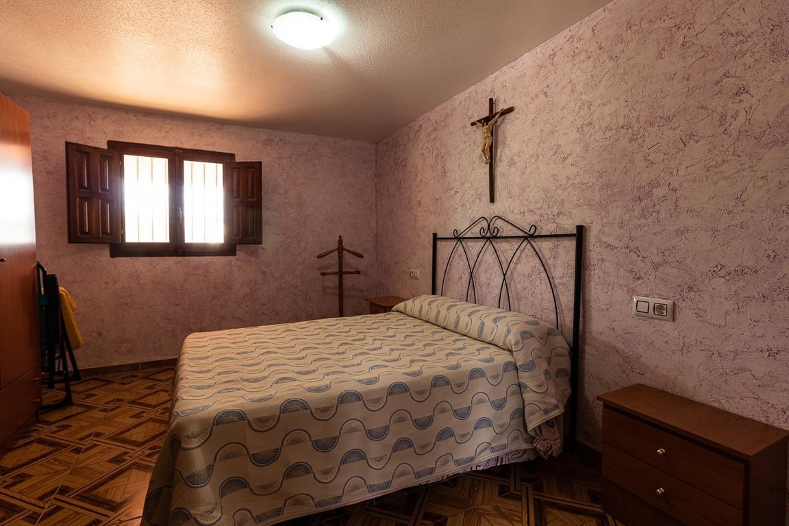 AFS Casas y Fincas presents this country house in the Zorro area (Bullas, Murcia), a property with a focus on lifestyle and productivity, ideal for those seeking countryside, privacy, and agricultural land. The house offers a functional layout with 4 bedrooms and 1 bathroom, as well as a living-dining room with a fireplace, a separate kitchen, and a storage room. Outside, the distinguishing feature is a spacious south-facing porch, a private swimming pool, and a social area with a barbecue and ...