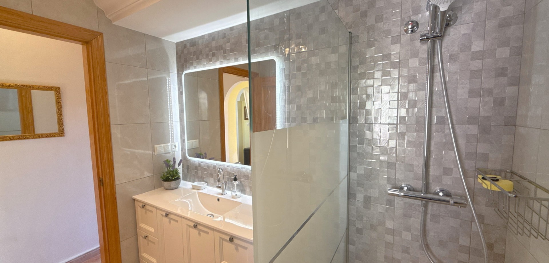 This is a fantastic detached villa set on a 400 M2 plot with a build size of 120 M2, the Villa has a an 8 x 4 private pool and has a private driveway for your car. The property is a 3 bedroom 2 bathroom villa with a large lounge / dining room which if need be could be turned into a 4th bedroom with the building of a pertition wall between the lounge and dining room, from the lounge you have patio door access direct to the lovely patio and pool area of the large garden area. The downstairs level ...