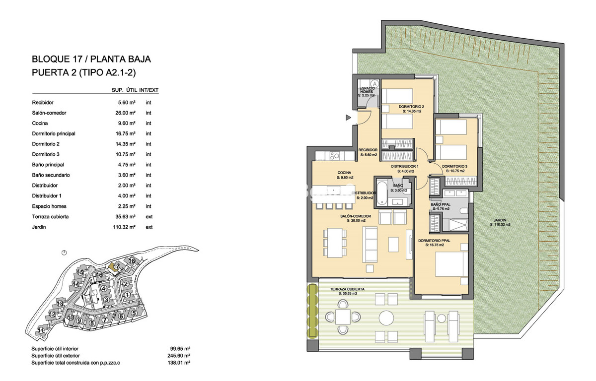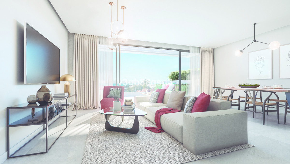 Promotion of new construction in the amazing area of Cabopino, idyllic place surrounded by nature, golf courses, beaches and tranquility, with the advantage of being located just 15 minutes from the center of Marbella. Fantastic bright ground floor apartment with large terrace of 36 square meters and a huge 110 square meters garden, very bright. It consists of two bedrooms both with bathroom en suite, in addition includes two parking spaces. The kitchen, open to the living room, connects thro...