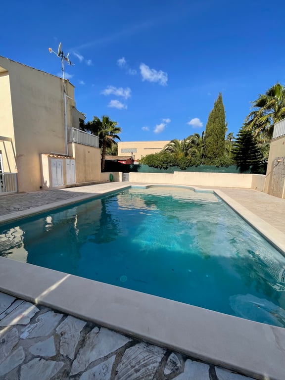 Charming Terraced house with private garden, garage, ETV rental license and communal pool in Cala Murada This charming home is located in a small and residential community of just four units in Cala Murada, combining classic Mediterranean style with a functional layout and lovely outdoor spaces. The property is distributed over two levels and offers approx. 108 m2 of living space. On the ground floor, you are welcomed by an entrance hall, garage, bathroom, and an open-plan living area with lou...