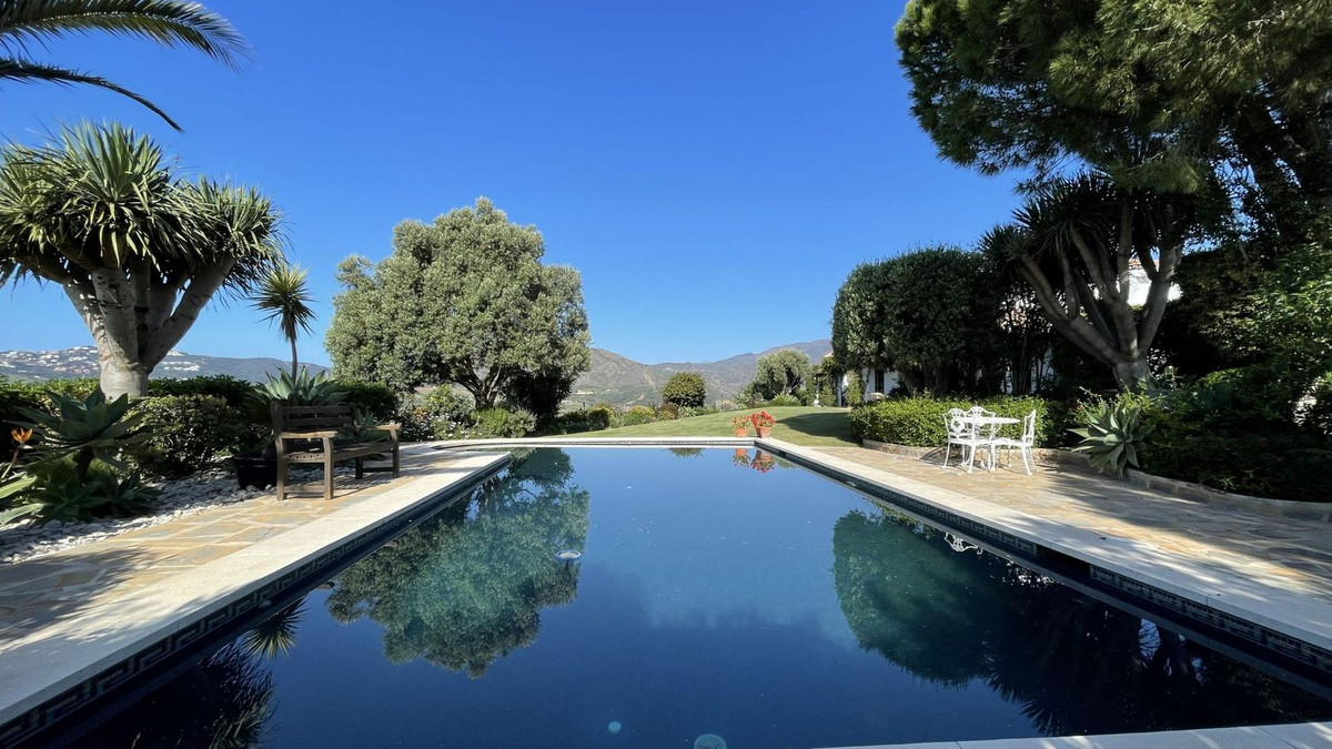 Immerse yourself in the captivating charm of this refined utterly peaceful country home, affording absolute privacy and breathtaking panoramic views, which unfold before you as far as the sea and the Sierra de Ronda. The beach, several golf courses, riding stables and extensive shopping facilities are only a 10-minute drive away. Embrace the timeless elegance of this Cortijo style country house, evident in the spacious rooms bathed in natural light and filled with a sense of effortless sophistic...