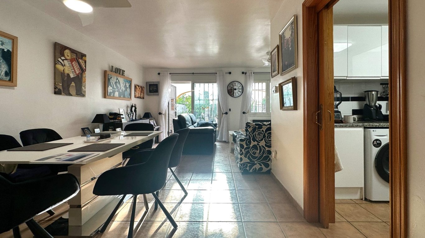 Cozy corner semi-detached house of 112 m2, located in a quiet and well-connected area of Calpe, just 1 km from the center, near schools and shops, and only 2 km from the beach. The property is distributed over two floors and features 3 bedrooms, 2 full bathrooms, and a practical storage room. It also has a covered porch and an uncovered outdoor area, perfect for enjoying the Mediterranean climate year-round. On the ground floor, there is an independent kitchen with access to the living-dining ro...