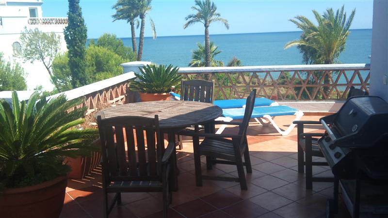 Frontline beach 3 bedroom duplex penthouse - Beautiful tropical communal gardens + heated pool. Apartment - Penthouse, Casares Playa, Costa del Sol. 3 Bedrooms, 3 Bathrooms, Built 140 m2, Terrace 60 m2. Setting : Beachfront, Close To Golf, Close To Port, Close To Sea, Close To Town, Close To Schools, Close To Marina, Urbanisation. Orientation : South East. Condition : Excellent. Pool : Communal, Heated. Climate Control : Air Conditioning, Fireplace. Views : Sea, Beach, Panoramic. Features : Cov...