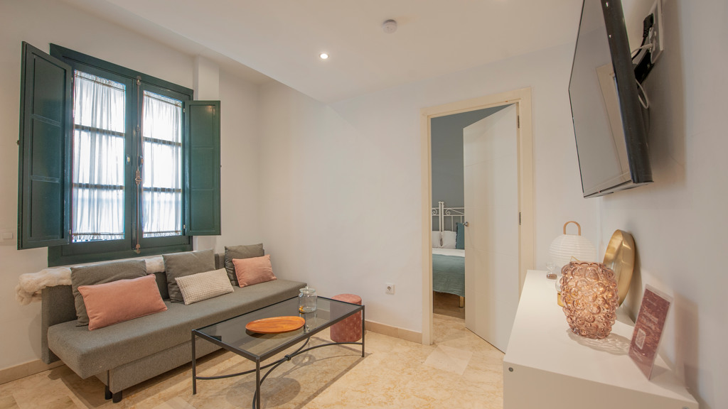 Gilmar sells a unique property that is located in an old nineteenth-century corral with a central courtyard flooded with color by gypsies. Between the 2 floors are the 13 apartments, each with its own modern style, without losing the Andalusian essence. This apartment with a tourist license is located on the first floor with a lift. Perfectly conditioned consisting of a living room, open equipped kitchen, bedroom with built-in wardrobe and bathroom with shower. It has a space to store belonging...