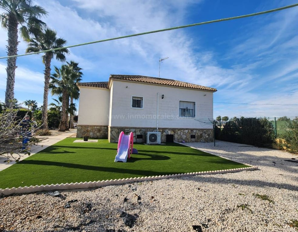 DETACHED VILLA, 4 BEDROOMS, 3 BATHROOMS, PRIVATE POOL AIR CON, SUMMER KITCHEN, LARGE PLOT, CATRAL InterProperty Sales is delighted to present this spacious family home in the tranquil countryside of Catral. Situated on a fully tarmac road with no passing traffic, this property offers both peace and convenience. The 169 m2 living space is thoughtfully distributed. Upon entering through the porch/terrace, you step into the hallway. To the right, you'll find a generous lounge/dining room with ...
