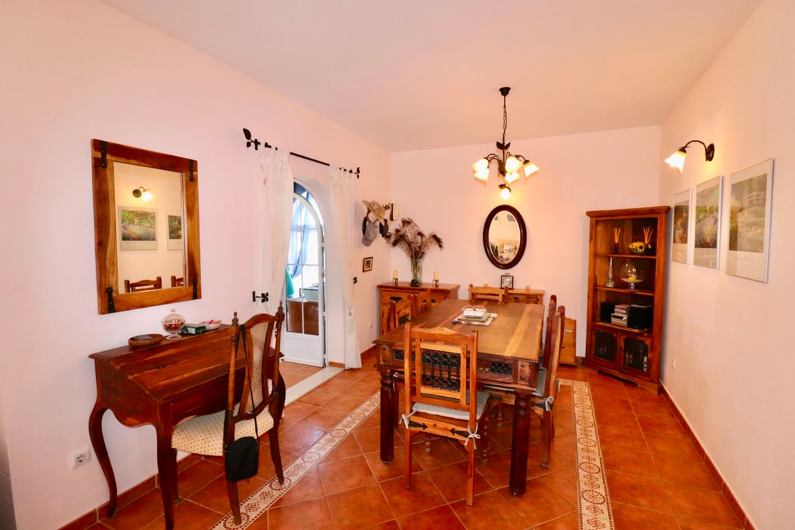 This charming country house is located near Catral, Dolores and Almoradí, on a spacious plot of 10,000m2. The main house has 3 bedrooms and 3 bathrooms, while there are also two separate guest houses, each with its own bedroom, bathroom, living room and kitchen. The main house offers a spacious living room, a separate dining room and kitchen. In addition, there is a cozy, enclosed patio that connects the main house with the guest houses. The plot includes a recently renovated private pool of 8x4...