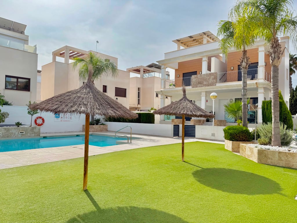Welcome to Your All-Year-Round Private Paradise in Ciudad Quesada This elegant 3-bedroom, 2-bathroom, 1 toilet townhouse offers the perfect blend of comfort, convenience, and Mediterranean lifestyle. The property features a versatile underbuilt area, complete with its own living room, bedroom, and bathroom — ideal for guests, extended family, or as a private retreat. Enjoy multiple outdoor spaces, including a porch, two balconies, a charming seating area, and a spacious solarium, perfec...