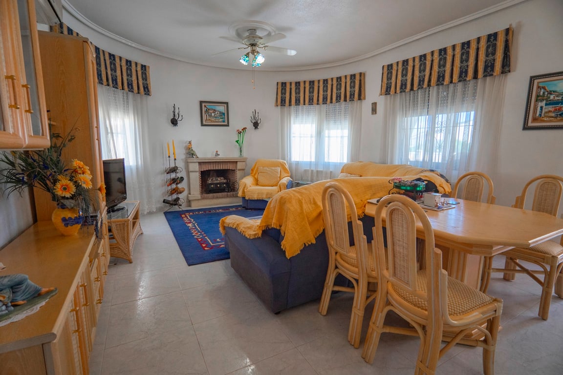 This beautifully presented Spanish-style detached villa is ideally located in the town center of Ciudad Quesada, offering both convenience and comfort in one of the area's most sought-after locations. Set on one level, the property features 3 spacious bedrooms and 2 bathrooms, including a master ensuite. The bright and airy living space includes a cozy fireplace, perfect for cooler evenings, and air-conditioning in all rooms—recently serviced—for year-round comfort. A glazed balcony provides a...