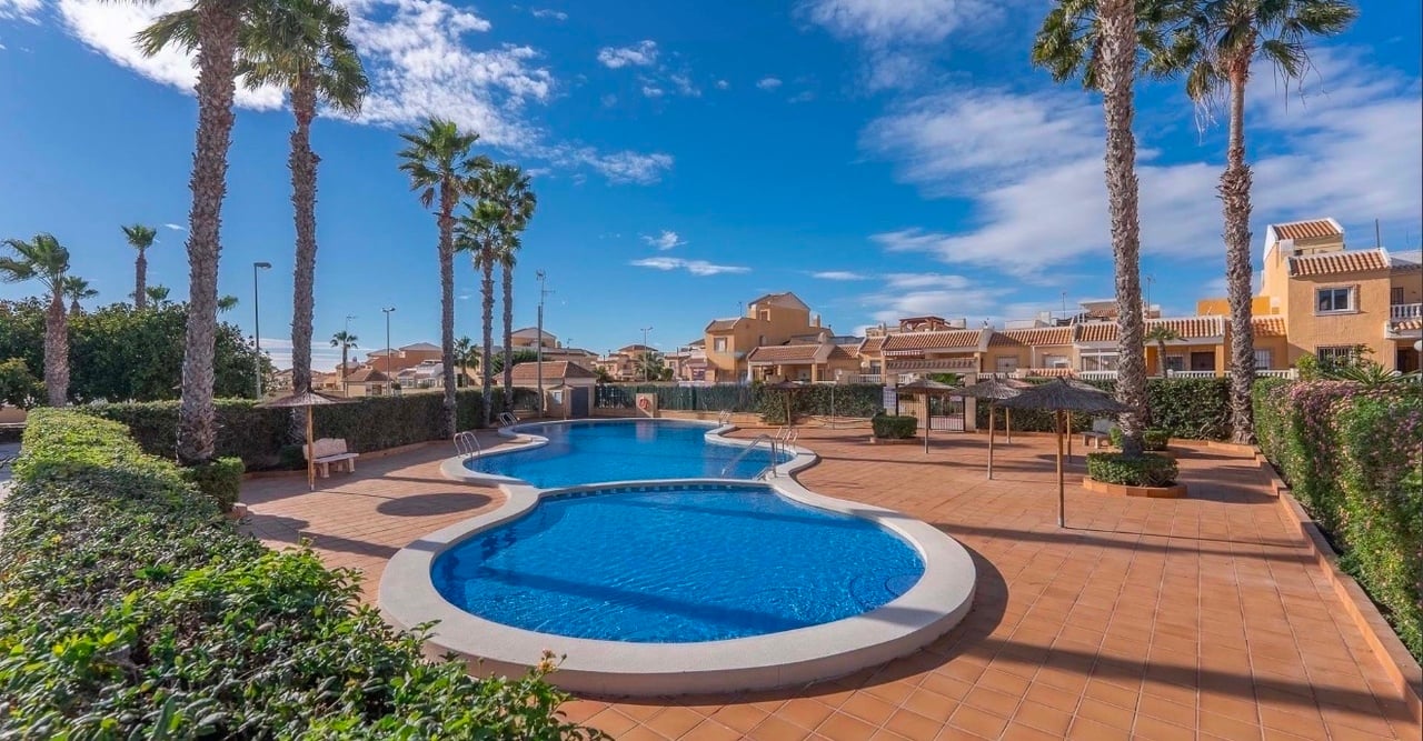 We are pleased to present this Charming West-Facing Bungalow with Private Solarium and Spacious Garden in Ciudad Quesada! This delightful two-bedroom, one-bathroom west-facing bungalow is situated in the sought-after area of Ciudad Quesada, offering the perfect blend of comfort and outdoor living. The property benefits from a large private garden, private solarium, and access to a communal pool just behind the home.The front garden enjoys the afternoon sun thanks to its west-facing orientation a...