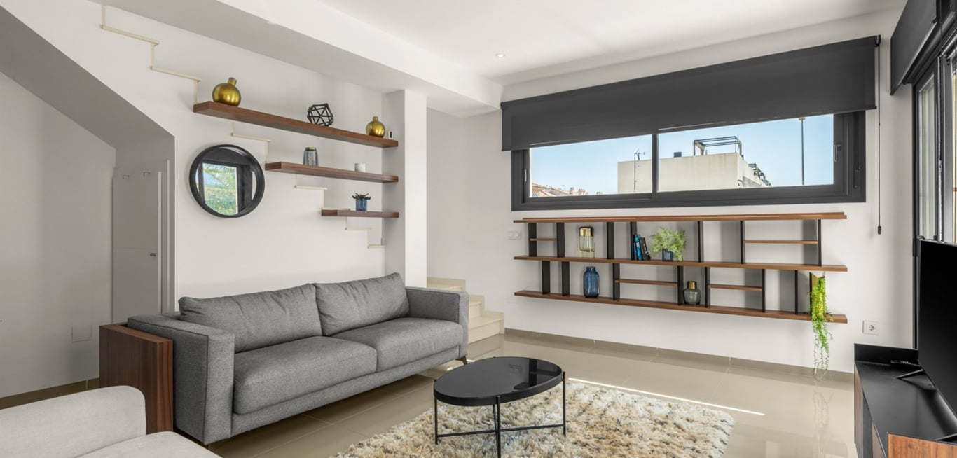 Discover this stylish contemporary villa set over two floors, designed to offer comfort, functionality, and modern living. The property features 3 spacious double bedrooms and 3 bathrooms. On the main floor, you will find a bright and airy living and dining area with direct access to the outdoor space, a partially open-plan fully equipped kitchen, one bedroom, and a bathroom. There is also a practical storage room on this level. The first floor offers two bedrooms, both with en-suite bathr...