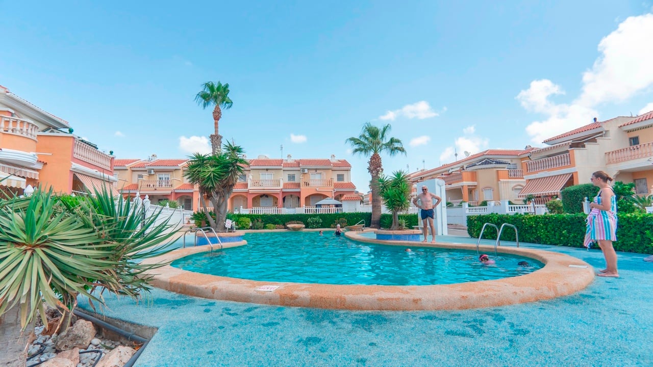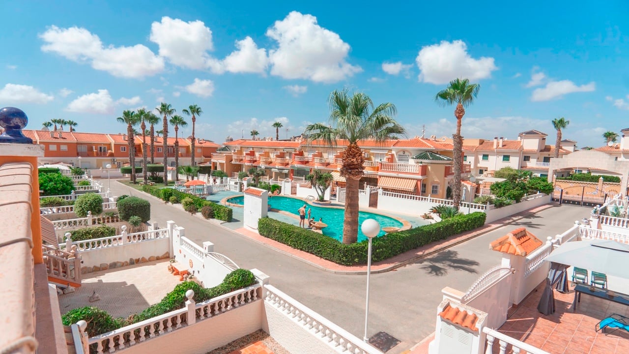 This charming 3-bedroom, 2-bathroom end terraced townhouse boasts the unique Fortuna special style and is located in the sought-after area of Doña Pepa, Ciudad Quesada. The property features an ample terrace that offers slight views of the communal area and pool, perfect for enjoying the Spanish sun.On the ground floor, you will find a spacious bedroom and a modern bathroom, ideal for guests or convenient living. The first floor comprises two additional bedrooms and another well-appointed bathro...