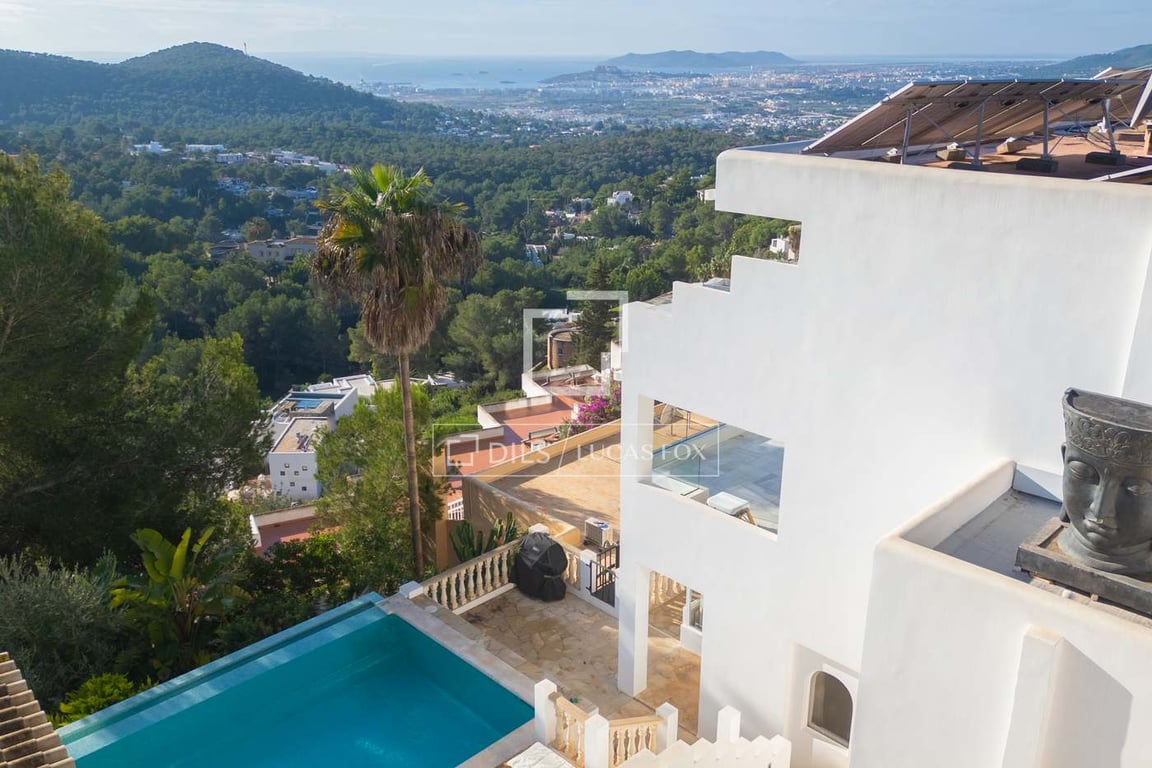 Perched at the very top of Can Furnet, one of Ibiza’s most desirable and Eivissa’s most conveniently located neighbourhoods, sits this fantastic 4 bedroom 311mt sq villa with outstanding views of Dalt Vila and the south coast of the island, as well as Formentera. Upon entering the 550 mt sq plot, you are instantly met with jaw-dropping views of undulating green hills, the sea and the stunning Dalt Villa Castle and City. As you descend the entranceway steps you find the first sun terrace and en...
