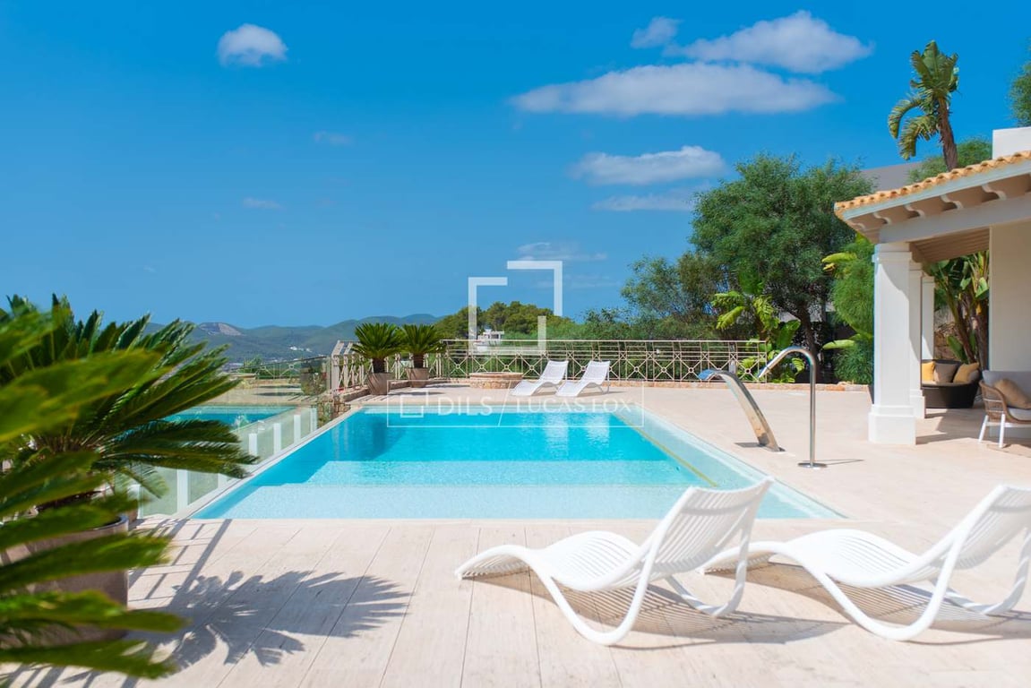 This stunning villa, originally built in 2005 and recently renovated to the highest standards, is perched atop the prestigious Can Furnet development, offering unparalleled views of the sea, Formentera, and Dalt Vila. Boasting a total of 786 m2 of construction, including a 100 m2 garage, the property provides 534 m2 of usable space, mostly distributed on a single level—an architectural rarity in Can Furnet that ensures a seamless flow throughout the home. As you descend from the garage to the ...