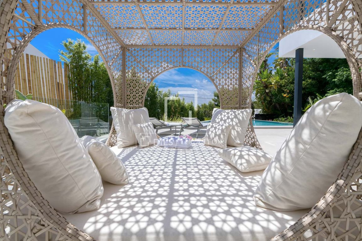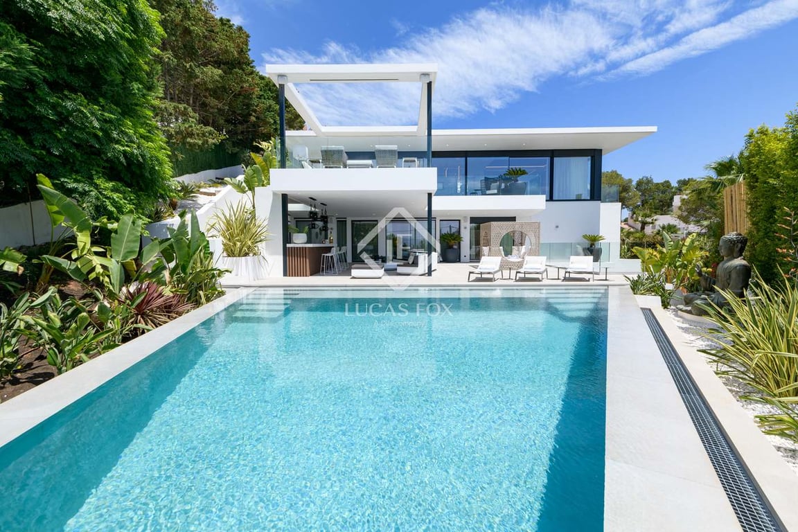 Luxury 6-bedroom villa, nestled in Cap Martinet, one of Ibiza’s most prestigious locations. Designed with a minimalist aesthetic and constructed just two years ago, this villa showcases the finest quality materials and an impeccable taste in decor throughout its spacious layout. Spanning three levels, the villa offers an impressive flow of open, light-filled spaces. The ground floor features an expansive living room, dining area, and a high-end kitchen, all seamlessly connected to the outdoor ...