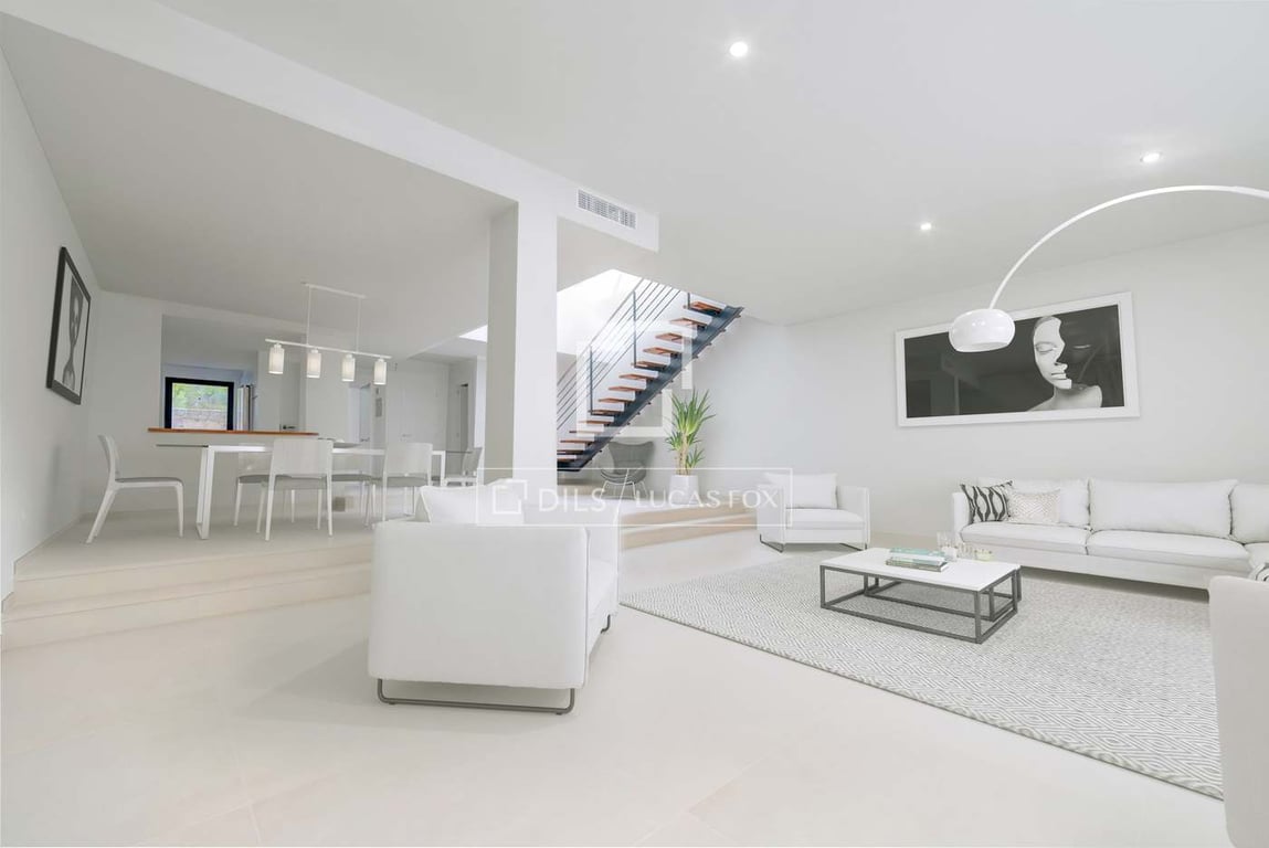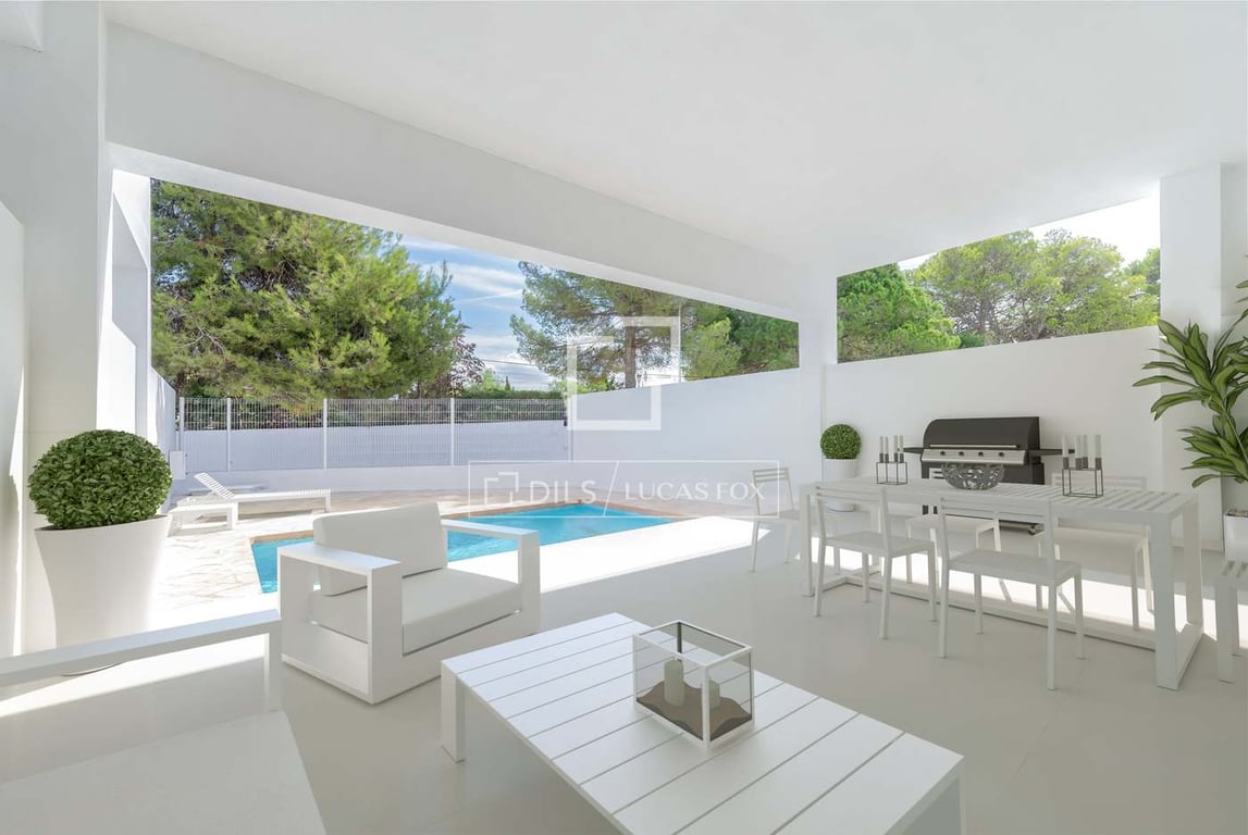 Lucas Fox presents the Villas Punta Pedrera development , featuring eight luxurious villas located in the coveted area of San Josep de Sa Talaia, just a short distance from the sea. Specifically, this villa with an Ibizan design has 287 m2 of built area and 72 m2 of private outdoor space. It also boasts top-quality finishes and an elegant and functional design. Inside, it boasts open, airy interiors. Exterior, there is an elegant pool and a private garage. On the main floor , a spacious and ...