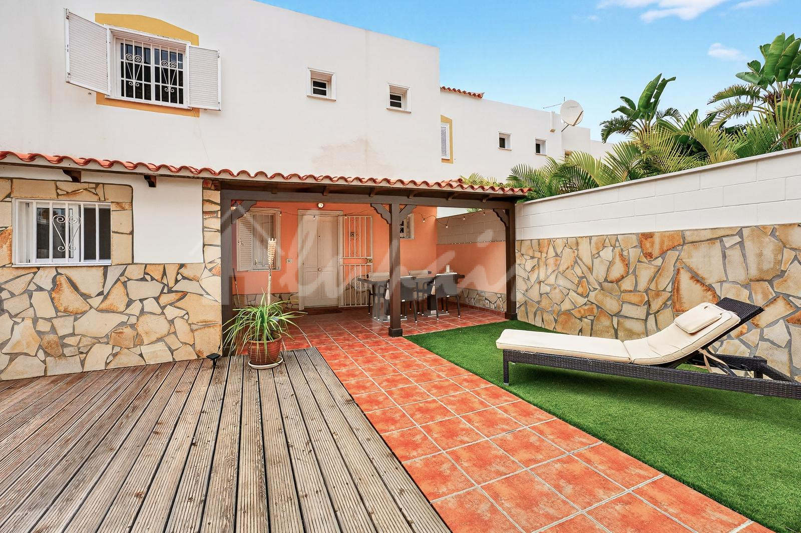 This fully furnished three-bedroom townhouse is ideally located in the well-established residential area of Torviscas Alto, adjacent to El Madroñal. The property enjoys a convenient setting just a short drive from the popular resort areas of Playa de Las Américas, offering beautiful beaches, a wide range of restaurants, and numerous leisure facilities. Siam Mall, Siam Park, and several reputable schools are also within close proximity. The well-known Gran Sur Shopping Centre—featuring a supermar...