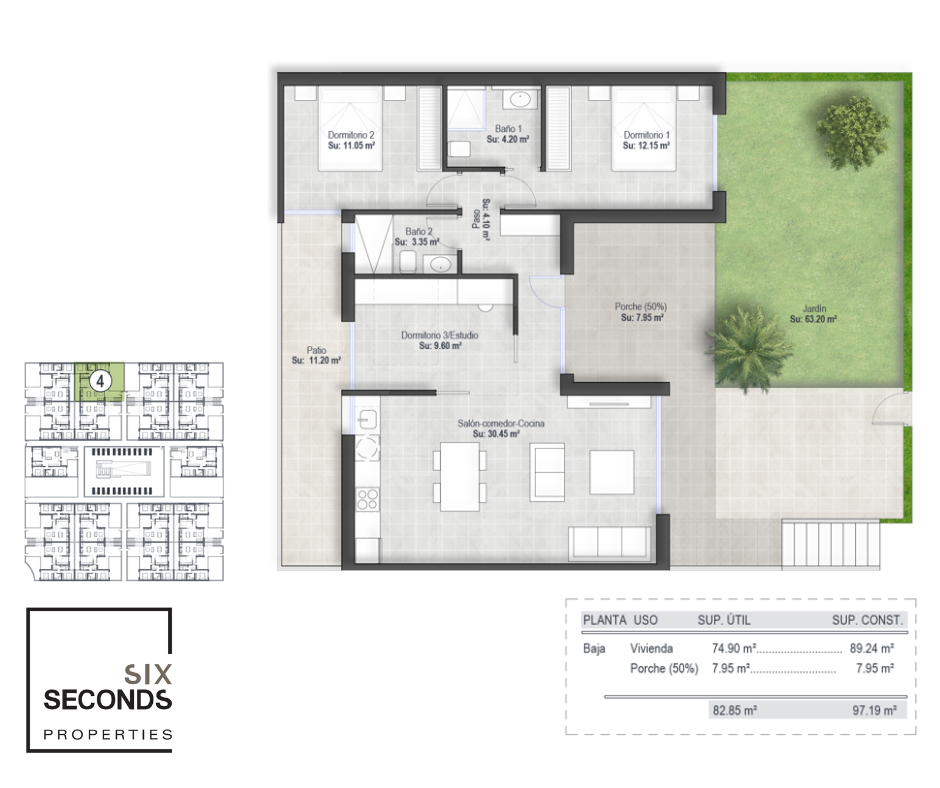 Six Seconds Properties invites you to discover a sophisticated residential complex of 20 bungalows in Alhama de Murcia, in an incomparable natural setting next to a prestigious golf course. These contemporary homes offer 2 or 3 bedrooms and 2 full bathrooms, with layouts designed to maximize natural light and comfort. The ground floors feature a private garden and a cozy backyard, while the upper floors feature spacious porches, a solarium, and a convenient summer kitchen from which to enjoy th...