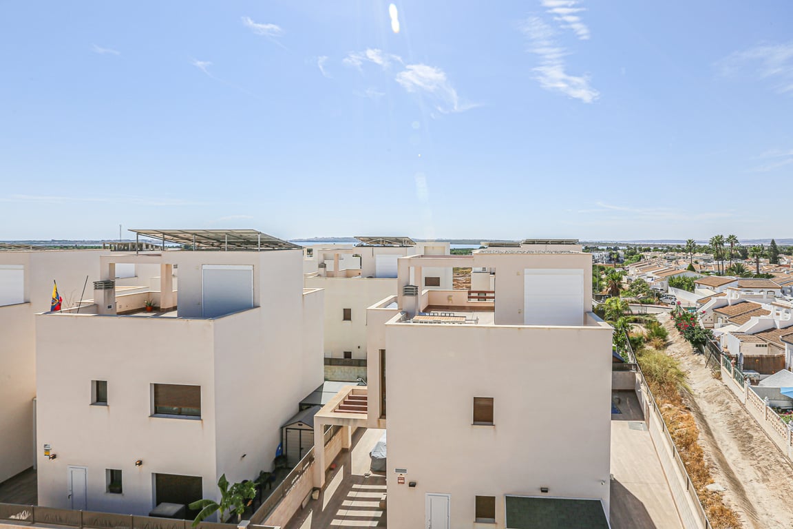 For sale: Detached villa located in Doña Pepa, Ciudad Quesada (Rojales), positioned at the end of a quiet access road with a private entrance and automatic vehicle gate. The property is set on a low-maintenance plot with wood-style paving, landscaped planters, a private swimming pool and an outdoor storage room. A key feature is the unfinished basement, offering the possibility to create additional living space according to requirements. The ground floor includes a bedroom with direct acce...