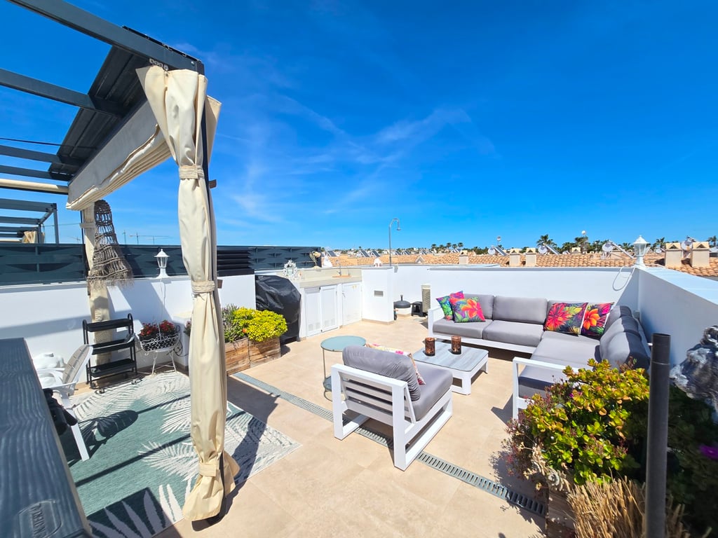 Discover this elegant home in Ciudad Quesada , located in a fantastic gated community that combines privacy, security, and meticulous attention to detail. The property, in perfect condition , offers three spacious bedrooms and two modern bathrooms , ideal both as a permanent residence and for enjoying unforgettable holidays on the Costa Blanca . Its contemporary design features a high-quality open-plan kitchen , seamlessly integrated with a bright living-dining room, equipped with premium detail...