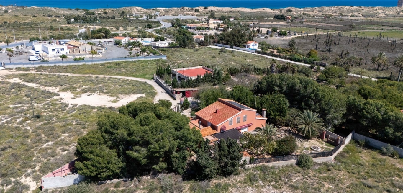 Costa Blanca Eiendom presents this magnificent detached villa in El Altet. Situated on a large plot of 1,700 m2, this property offers a private and serene residential environment just 600 meters from the beach, close to the renowned Arenales del Sol and Urbanova beaches, and with excellent access to Alicante International Airport. The house, distributed over two floors, offers approximately 243 m2 of built space. On the ground floor, there are two spacious living-dining rooms, one with a fire...