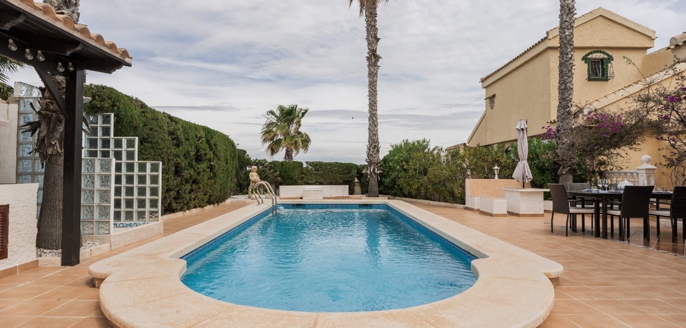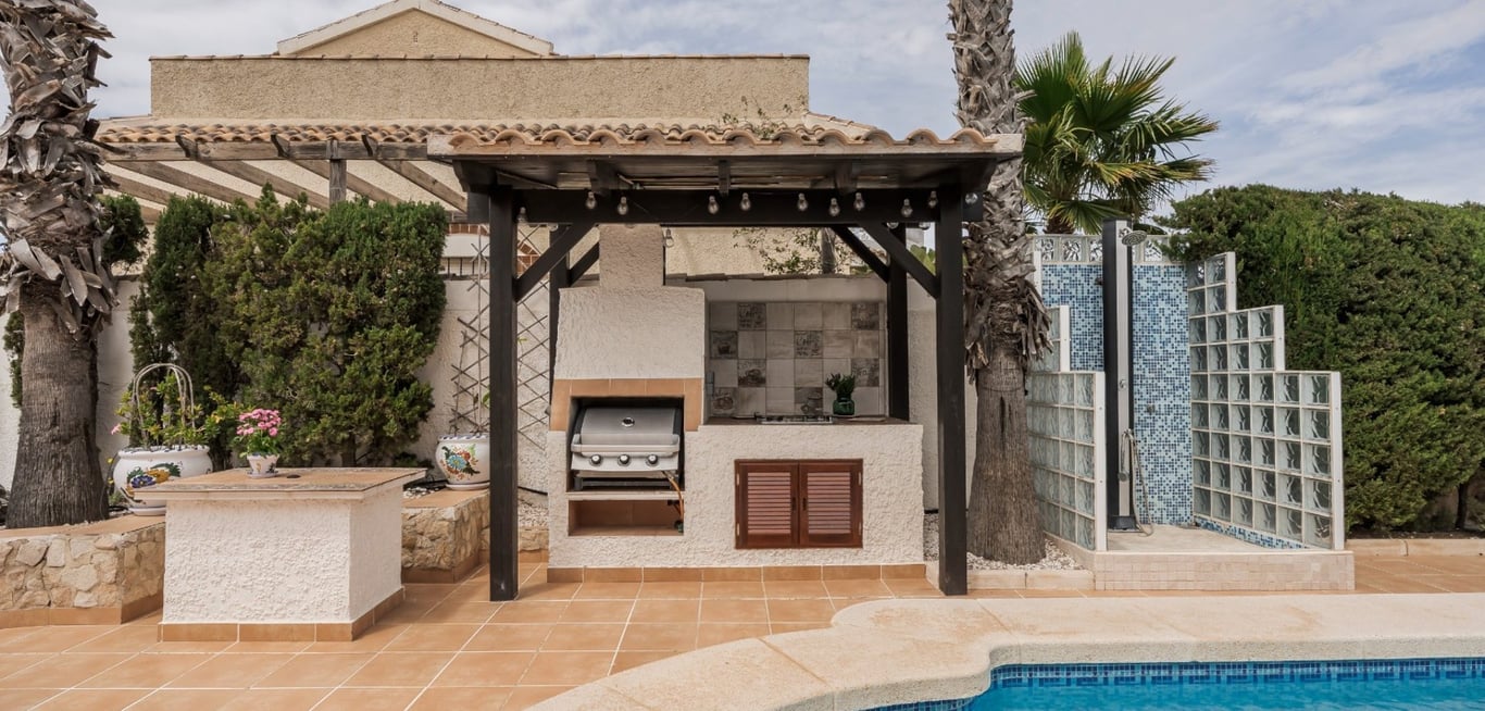 Costa Blanca Eiendom presents this spacious detached villa situated on a desirable corner plot in the heart of Gran Alacant, just a short walk from the sea. Combining privacy, comfort, and generous outdoor space, it’s ideal for families or anyone seeking a relaxed Mediterranean lifestyle close to all amenities. Upon entering the plot, you're welcomed by a wide open area, a generous private swimming pool, and a built-in outdoor kitchen with gas barbecue. You can walk all the way around the vil...
