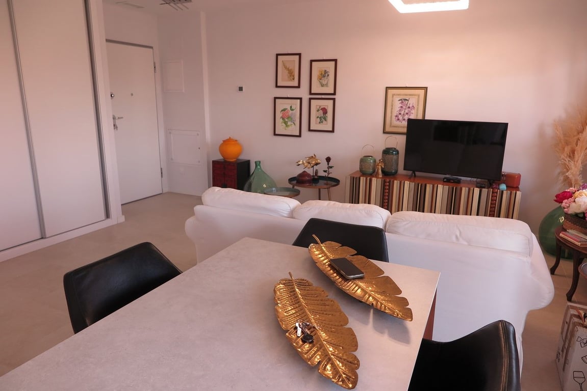 Beautifully-maintained, modern and light-filled apartment. Includes three double bedrooms each with fitted wardrobes, two bathrooms with showers, a fully-fitted open plan kitchen, a good-sized living area leading out to a large closed terrace with splendid views to the sea and the mountains. The property also includes a secure underground parking space and storage room, with lift access to the apartment. The community includes a swimming pool, childrens' play area and social room. The proper...
