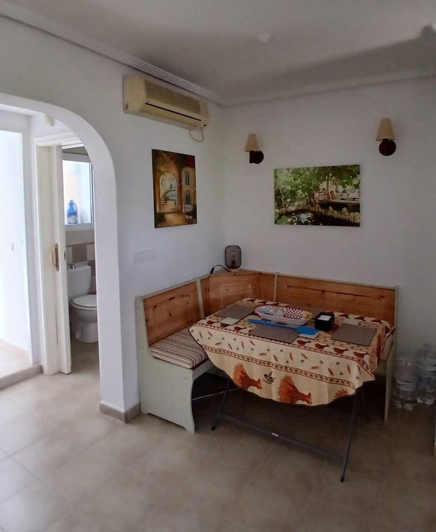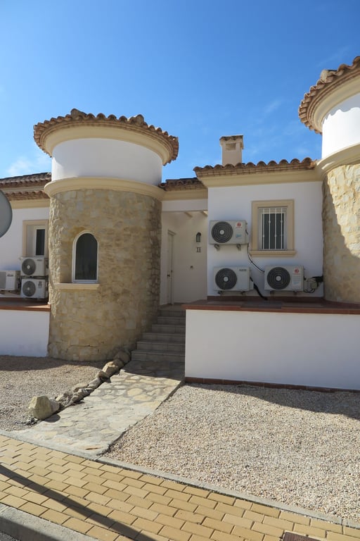 Lovely and well-maintained townhouse situated in the very desirable community of Calanuza. The property includes two double bedrooms with a full bathroom upstairs - the main bedroom has a delightful terrace with sea views - and downstairs we have an American-style fully fitted kitchen, a storage room and good-sized living area leading out to a private patio/small garden, again with marvellous sea views. The property is ideally located just 150 yards from the beautiful sandy beach of Cala Merce...