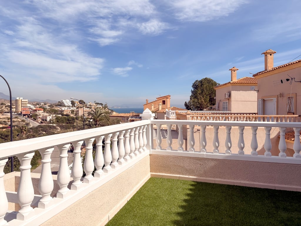 Located in one of the most attractive areas of the Alicante coast, near Pueblo Acantilado , this fantastic semi-detached 3-bedroom villa combines light, functionality and a privileged environment , ideal both as a regular residence and to enjoy as a second home by the sea. The property sits on a 500 m2 plot and has 160 m2 of living space , distributed over two floors with well-defined areas and abundant natural light. On the main floor, there is a spacious and bright living-dining room with acc...