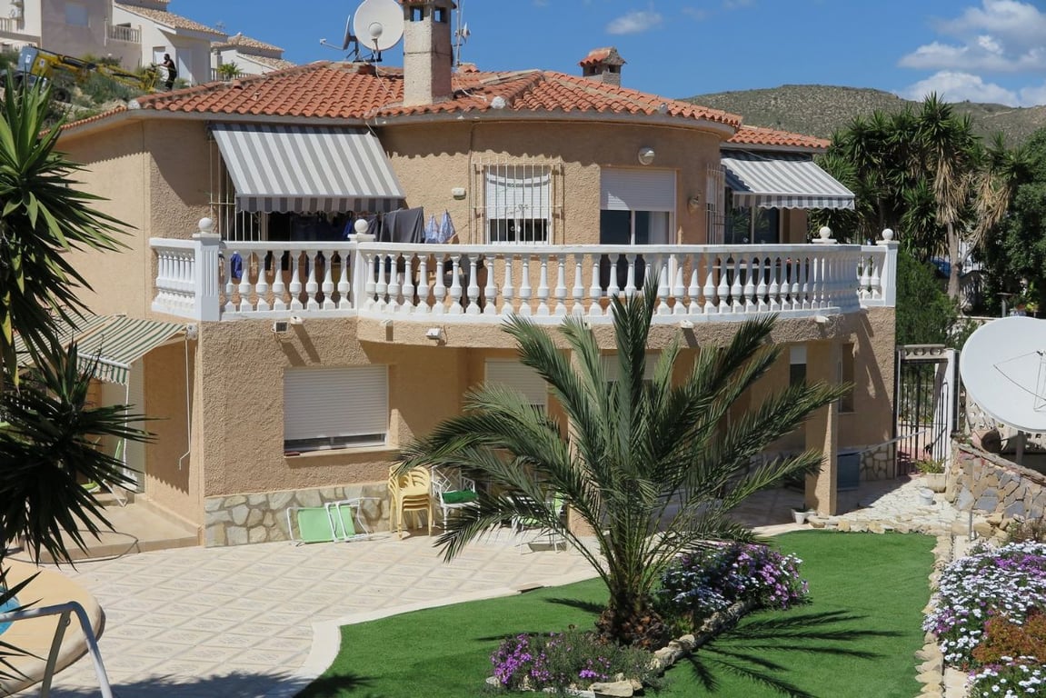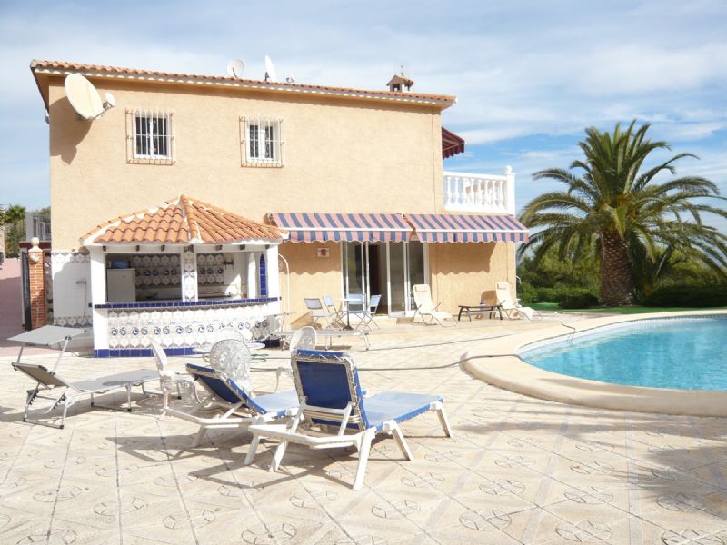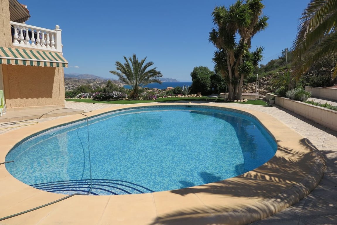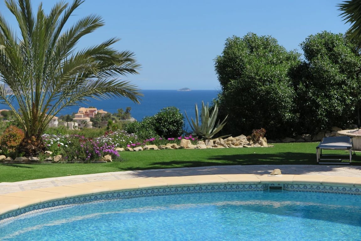 Unique villa on two floors with a separate apartment below. Includes in total four double bedrooms and four bath/shower rooms, 2 good-sized living areas, 2 fully-fitted kitchens and garage. The well-kept landscaped garden of about 1,000m2 includes a swimming pool and bar/BBQ area. With splendid views of the sea this luxury property is priced for a quick sale.[IW]