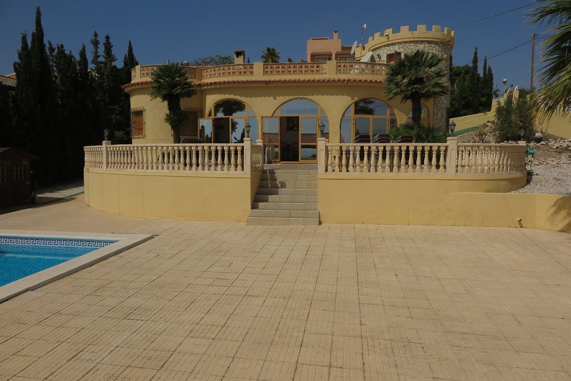 Impressive villa with magnificent sea views. Includes four double bedrooms and two bathrooms. There is also a fully fitted kitchen, a good-sized living area and as well a glassed-in terrace with superb views over the garden and swimming pool to the sea. The tower bedroom gives access to a large solarium, also with incredible sea views. The plot of over 1,600 m2 includes a beautiful swimming pool and a big shaded BBQ with kitchen and dining area. There are also two separate garages/storage ro...