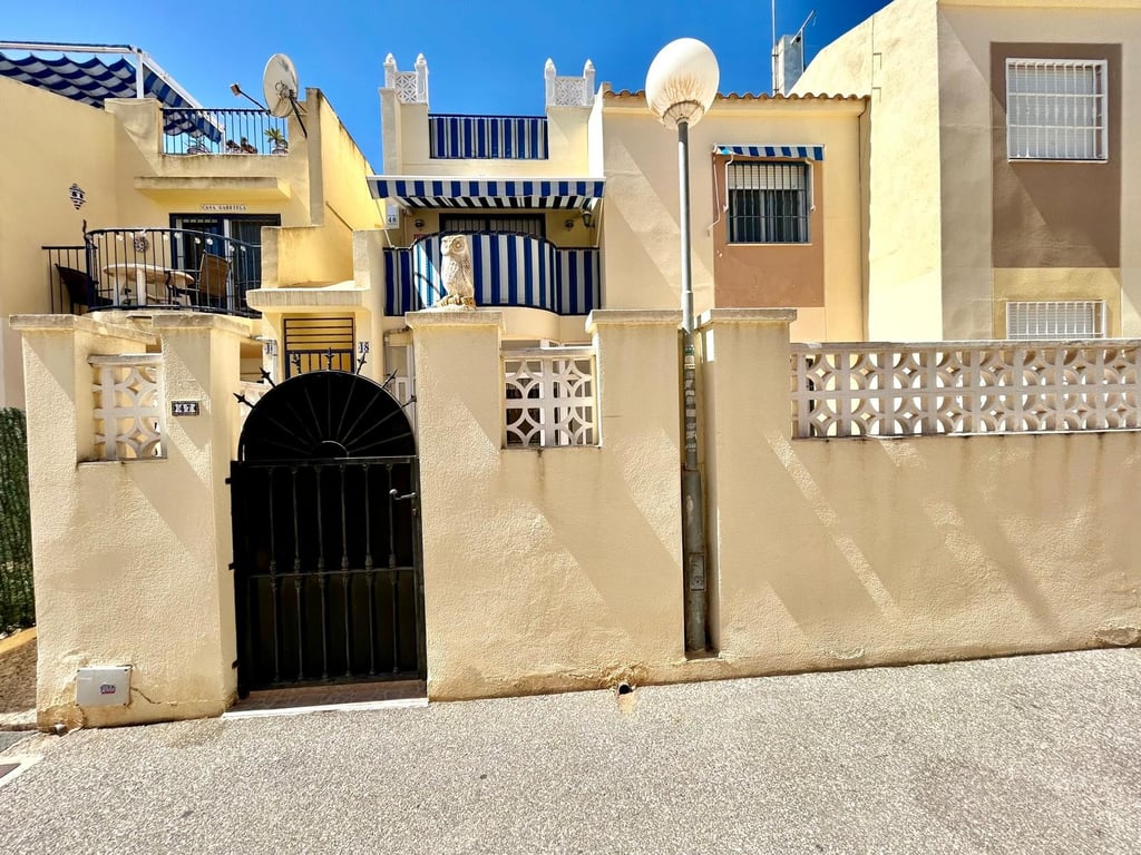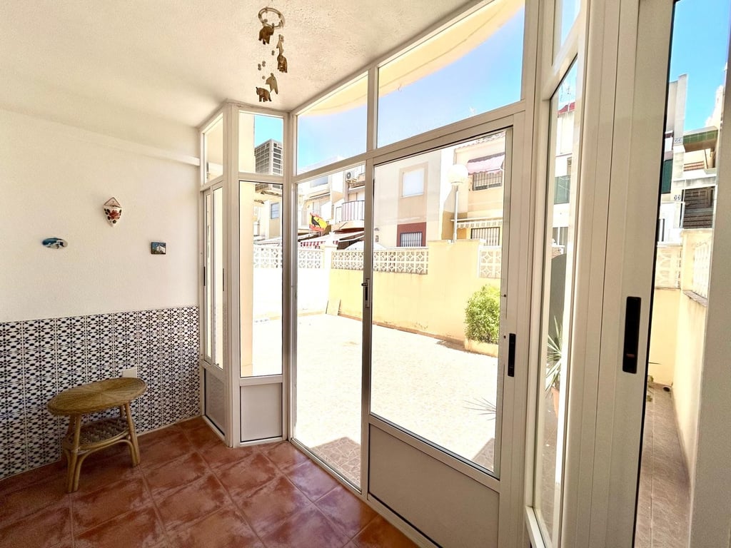 2 Bedroom Lower Bungalow with communal pool and fully tiled terrace for sale in Mirador I, El Chaparral close to Torrevieja & La mata This lower bungalow is in a prime location close to Natural Park and its close to bars, restaurants and bus routes. Access is via the pedestrian gate on to the fully tiled terrace, perfect for al fresco dining and outdoor living. Entering into the property is a glazed porch, an ideal dining space. From here leads into the spacious lounge/diner and access to...